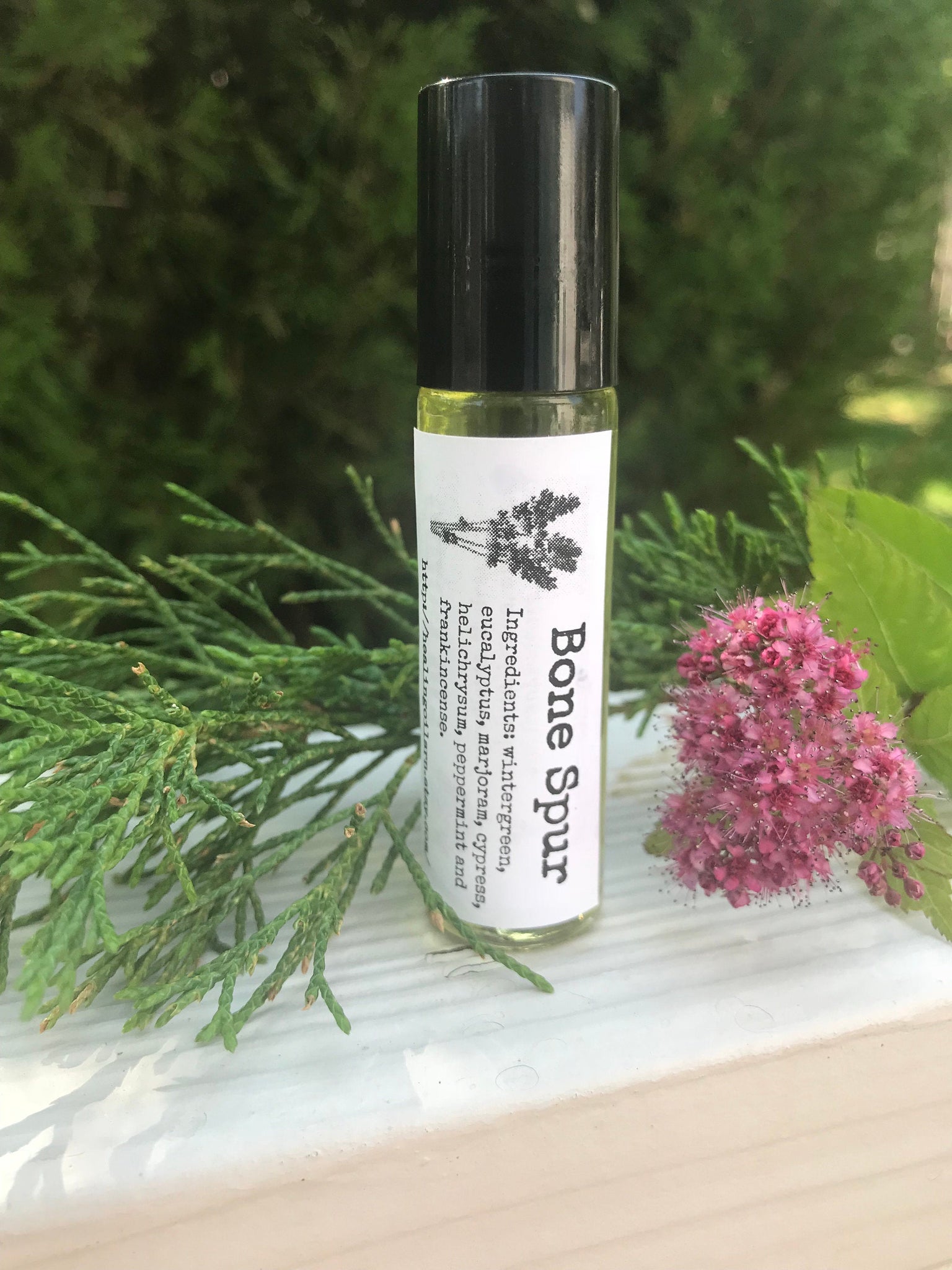This is a blend formulated to dissolve and help with the pain related to bone spurs. The oils in this blend include wintergreen, eucalyptus, marjoram, cypress, helichrysum, peppermint and frankincense.