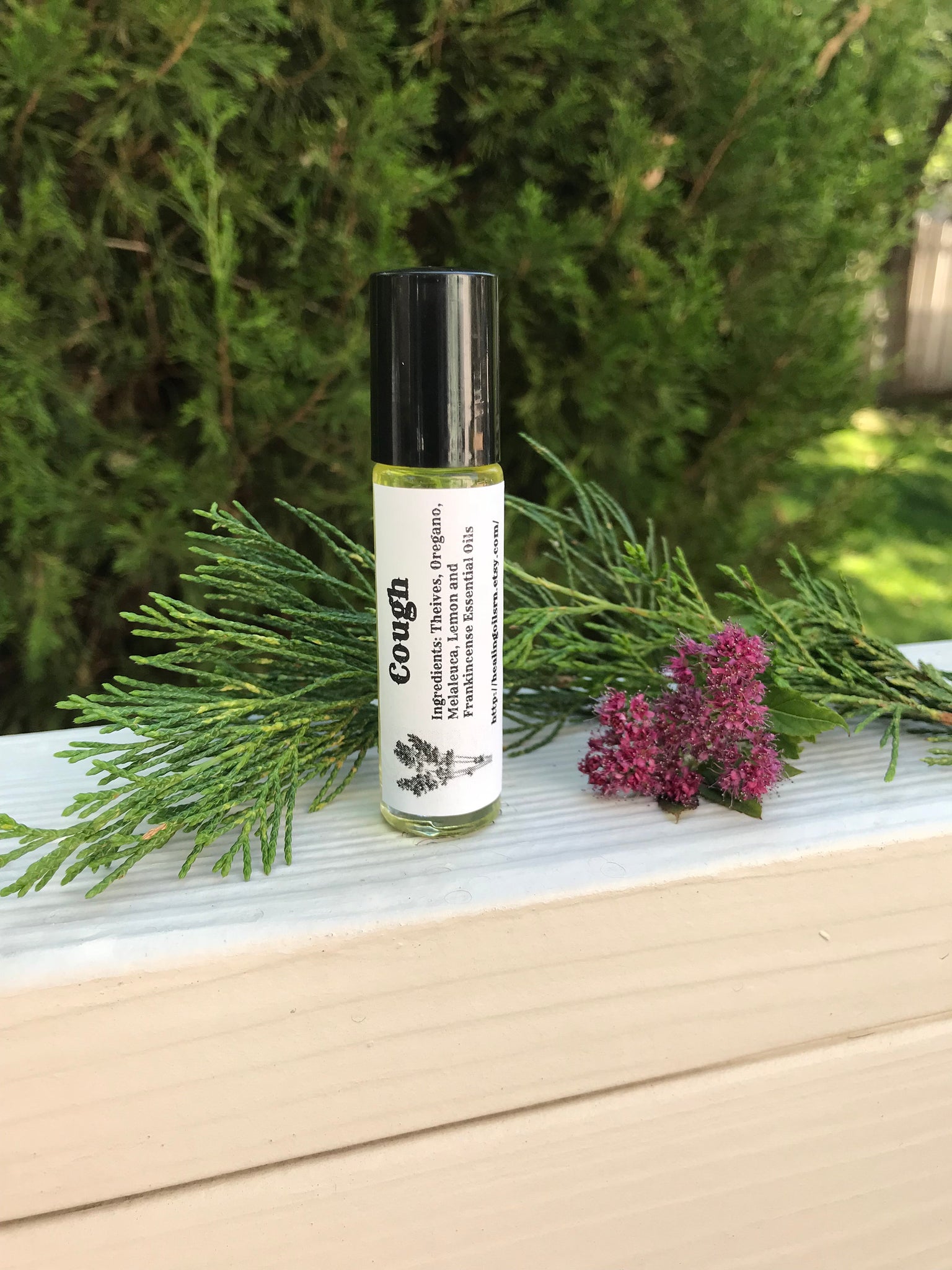 Cough Essential Oil blend contains Theives, Oregano, Melaleuca, Lemon and Frankincense. All oils are 100% therapeutic grade and pure!