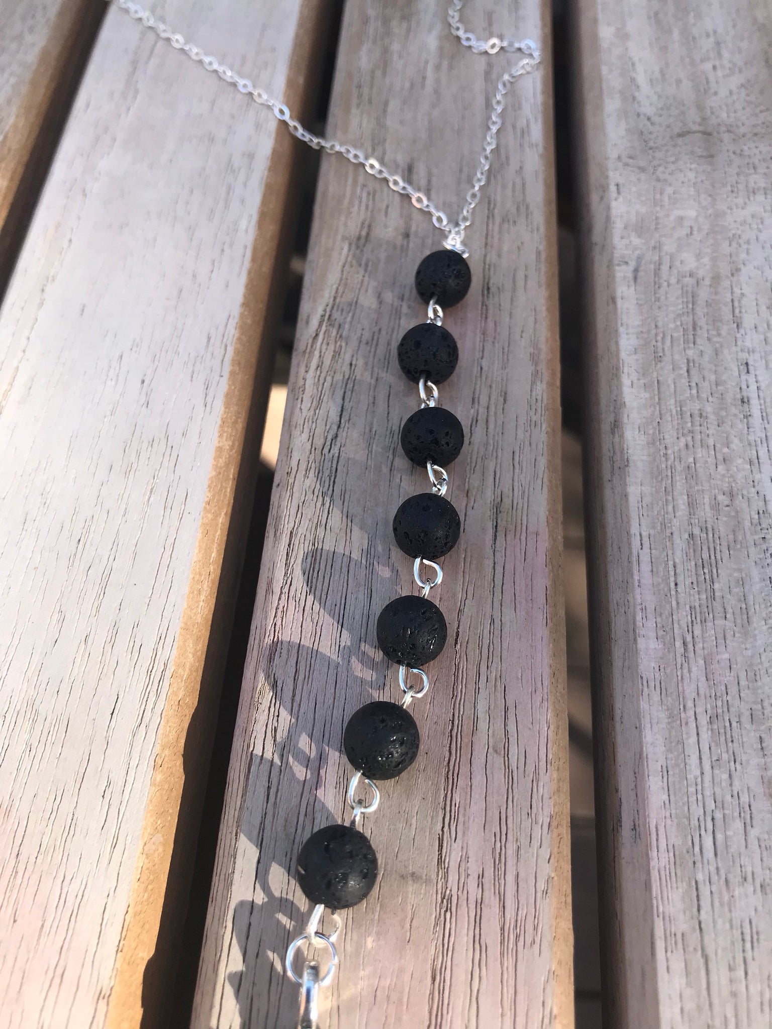 Long silver arrowhead lava bead essential oil diffuser necklace