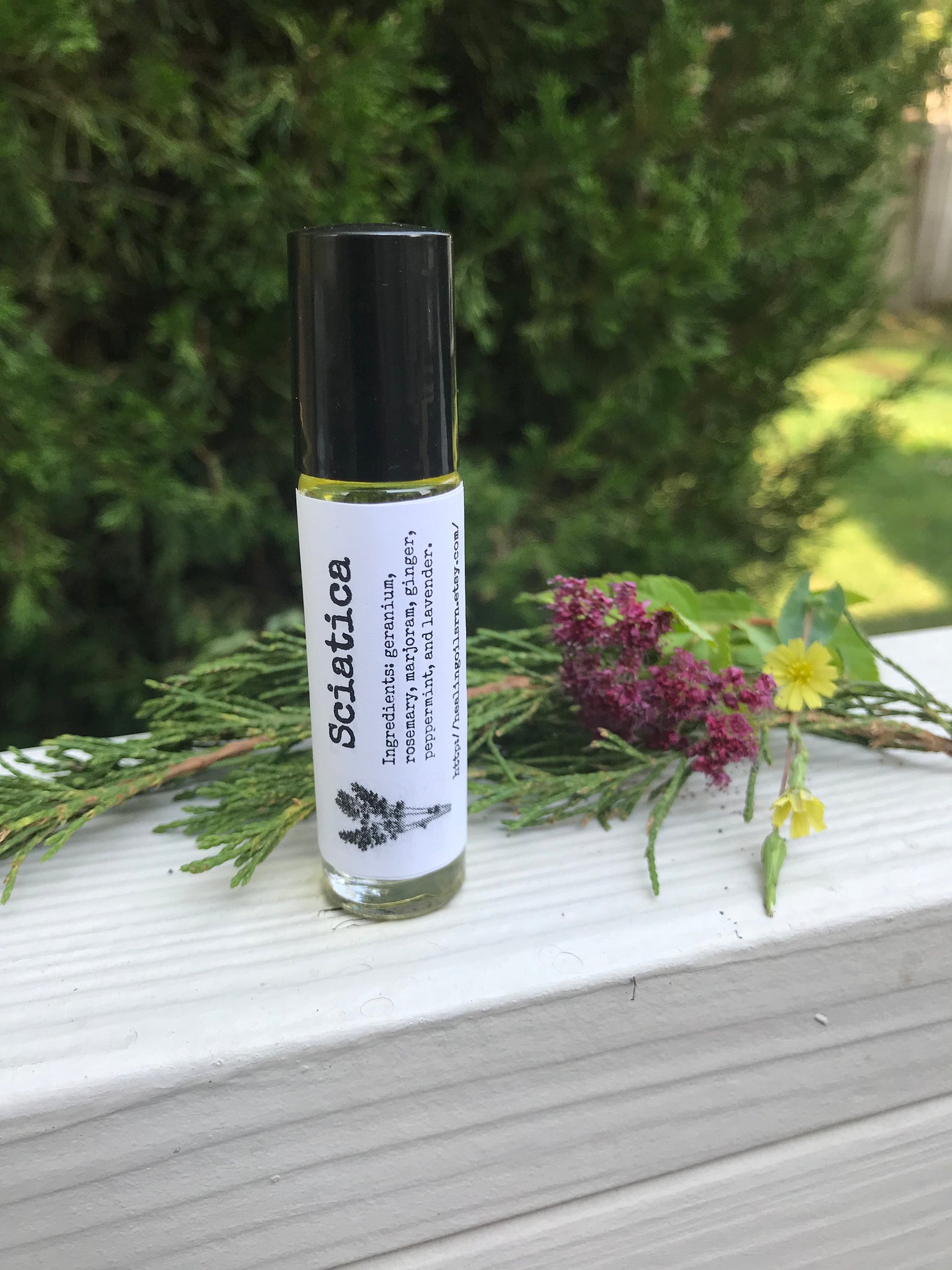 This is a sciatic nerve blend that contains geranium, rosemary, marjoram, ginger, peppermint, and lavender. All oils are 100% therapeutic grade and pure! This blend is safe for adults and kids. Always check with your doctor before use if you are pregnant or breastfeeding!