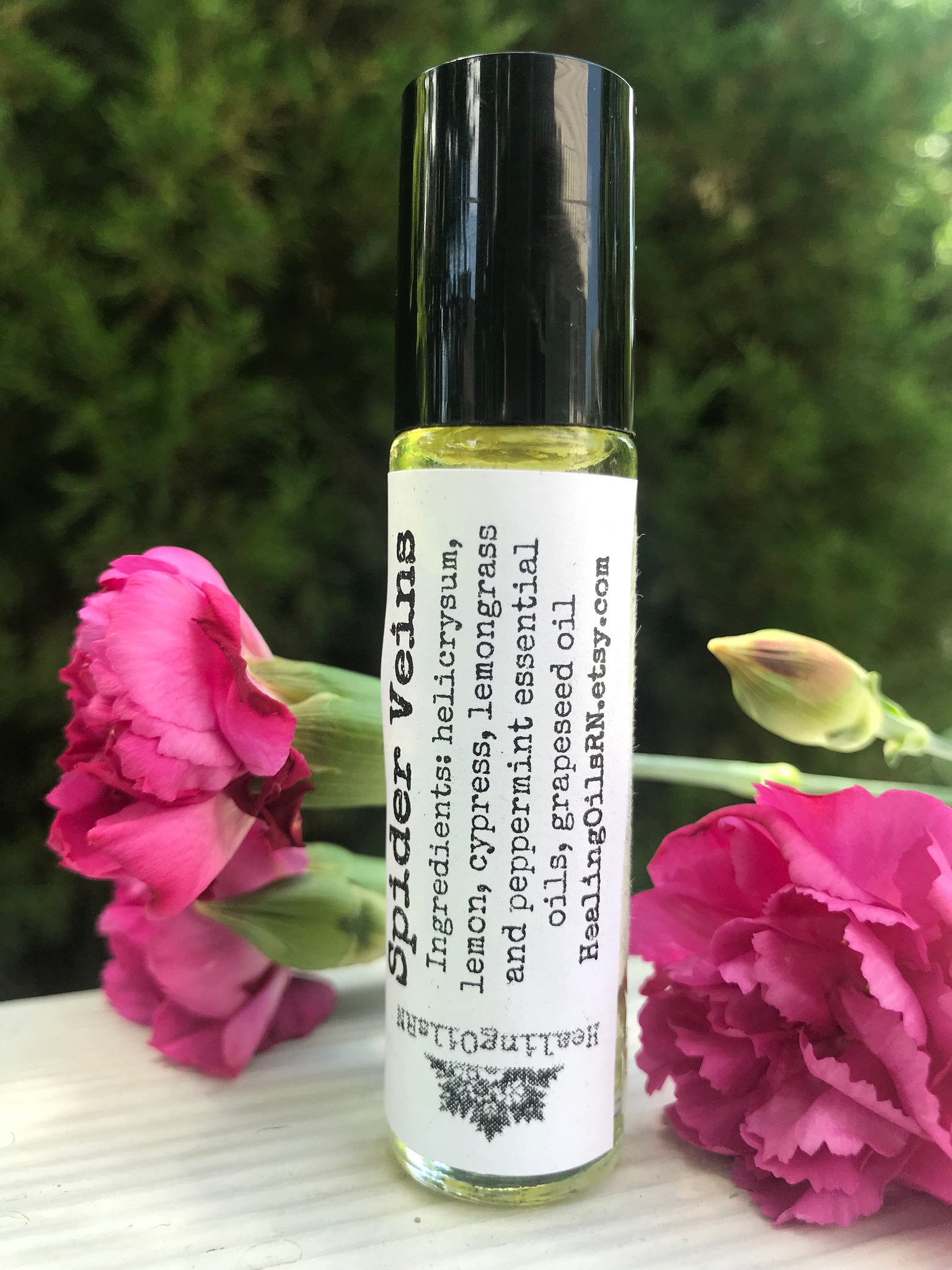 Spider Veins essential oil blend roller contains hrlichrysum, lemon, cypress, lemongrass, and peppermint essential oils. This blend has been diluted appropriately with grapeseed oil for ADULT topical use. If you would like something blended for a child/infant please message me when ordering and I will dilute according to age. Always check with your doctor before use if you are pregnant or breastfeeding.